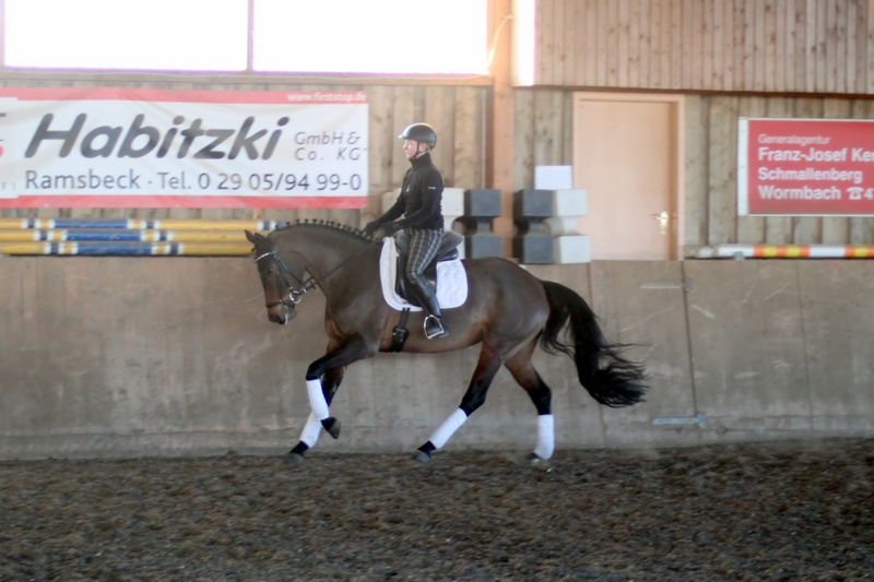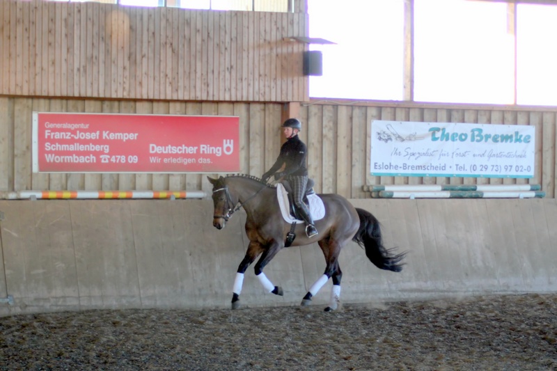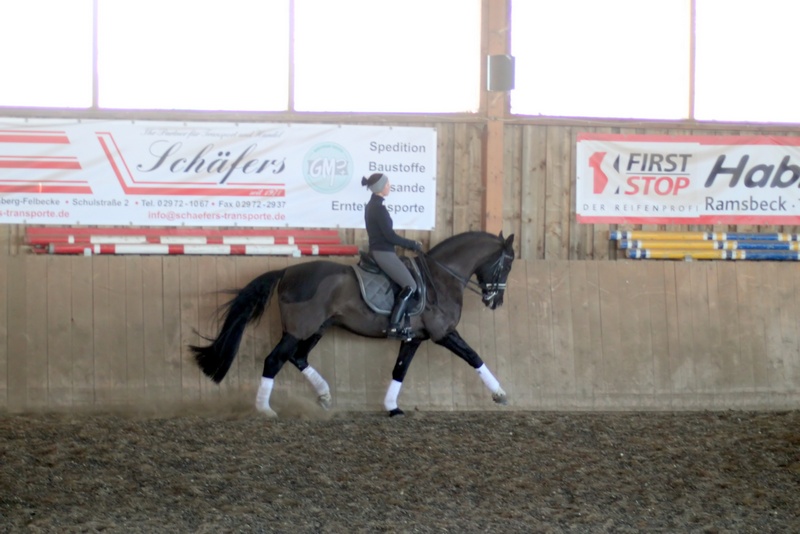 Schön fanden wir, dass es sich unsere Trainerin nicht nehmen ließ, eines der jungen Pferde von Hof-Hoeherhaus selbst vorzustellen.