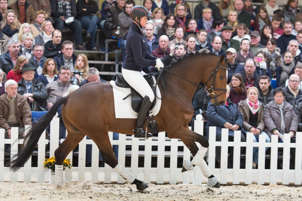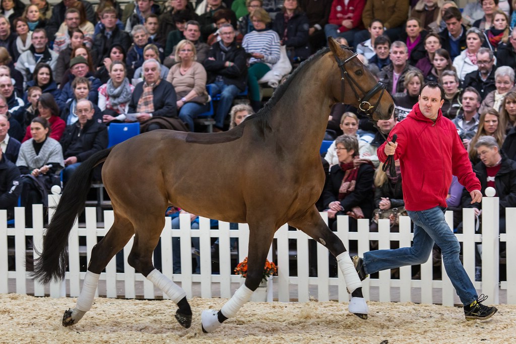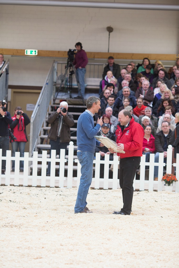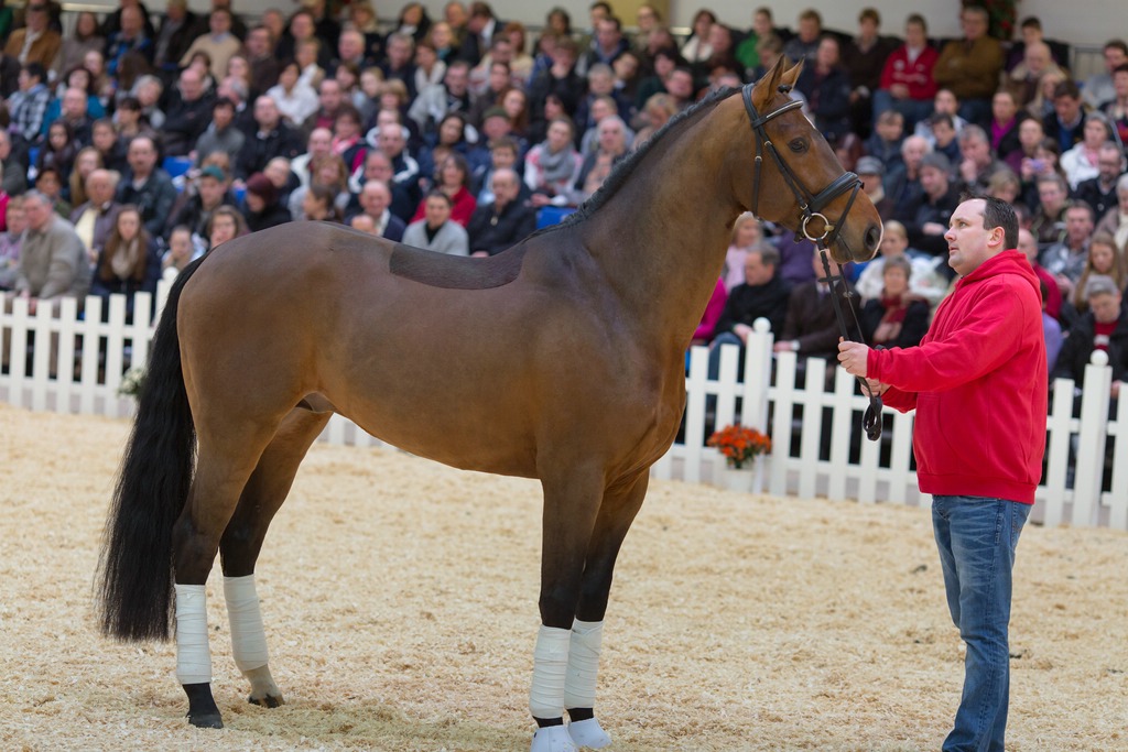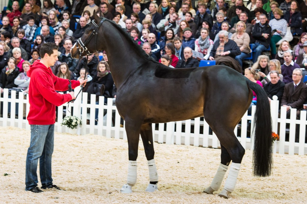 Nach dem wirklich ordentlichen Frühstück ging es für uns dann in die Eventhalle. Schließlich wurden dort mit „Like a Diamond NRW“ der Siegerhengst der Westfalenkörung 2012 und mit „Cachassini“ der beste Hengst aller 30-Tage-Tests 2012 mit einem Springzuchtwert von 151 gezeigt.