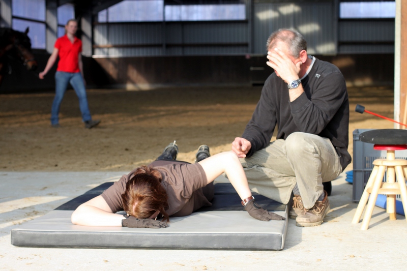 Einer davon ist Rolf Grebe, Ausbilder für Reiter und Pferd in Dressur bis Klasse S und im Springen bis Klasse M, der das Bewegungstraining nach Eckart Meyners in seinen täglichen Reitunterricht einbindet. Dieser ist ab Januar 2012  freiberuflich tätig, unter anderem im Reitverein Bayer Leverkusen, wo er bereits seit einigen Jahren im Trainerteam etabliert ist. Ganz nach dem Motto „Pferde sind immer Pferde, Reiter sind nicht immer Reiter“ (Alvisi) nahm sich der Bewegungstrainer für 5 Reiterinnen der Reitgemeinschaft Hof Höherhaus 2 Tage lang Zeit, um deren reiterlichen Defizite und Probleme herauszufinden und diese zu beheben. Was kann man sich darunter vorstellen?