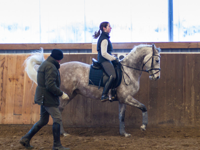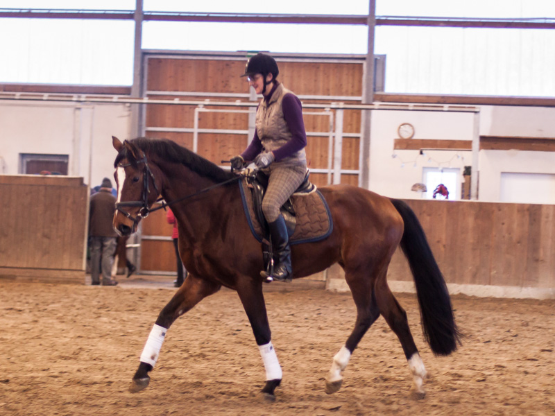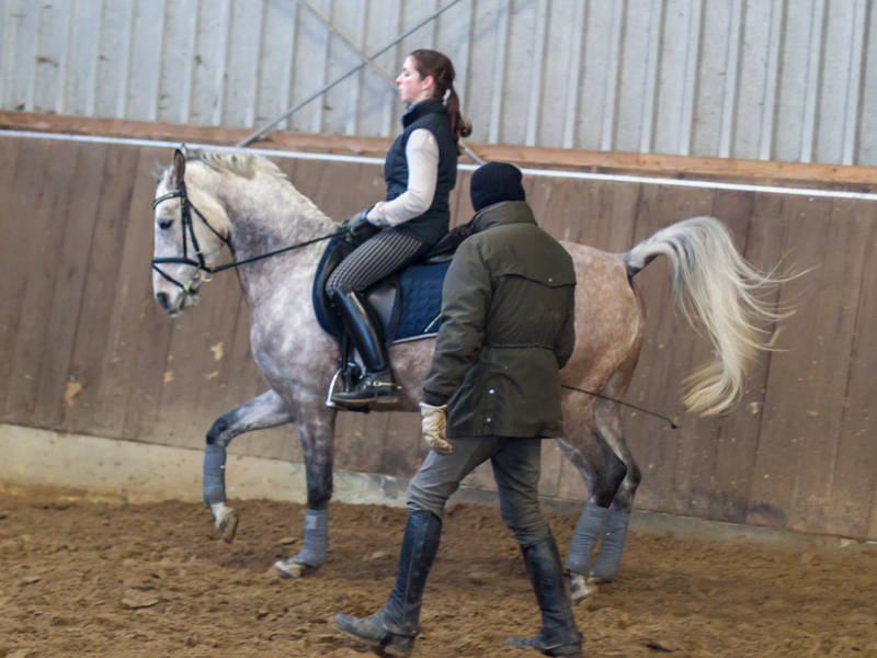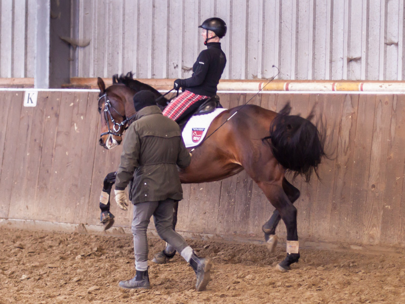 Aber trotz der Kälte war auch dieser Kurs wieder einmal ausgebucht. Schließlich heißt es ja auch: „Nach der Saison ist vor der Saison“. Und Reiter sind bekanntlich hart im Nehmen. Dazu wollte der ein oder andere die nun anstehende, etwas ruhigere Zeit auch zur weiteren Ausbildung nutzen und holte sich hierzu noch ein paar gute Tipps und Korrekturen von Rolf Grebe. Auch manchem Pferd war die Kälte anzumerken. So dauerte die „Aufwärmphase“ schon mal etwas länger als gewohnt. Trotzdem war bei fast allen Teilnehmern ein deutlicher Fortschritt zu erkennen, so Grebe. Christian, unser Fotograf konnte diese Fortschritte auf einigen Bildern festhalten. Wir haben diese Bilder – wie immer – diesem Bericht als Galerie angehängt.