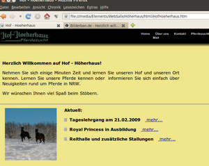www.hof-hoeherhaus.de ist nun seit 11 Jahren online. Wir waren damit einer der ersten privaten Pferdezüchter mit eigener Internetpräsenz im Sauerland. Innovativ bleiben wir natürlich und aus diesem Grund haben wir unseren Internetauftritt erneuert um den immer schneller werdenden Informationsbedarf gerecht zu werden.
