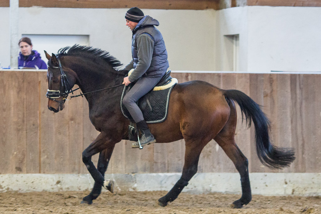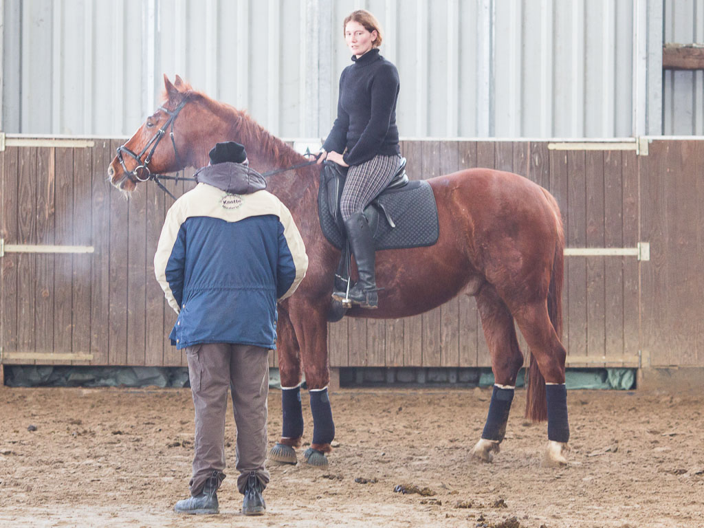 Die Dressurstunden standen am Sonntag unter dem Stern der harten Arbeit. Der Saisonauftakt wurde offensichtlich ernsthaft angegangen. Pferd und Reiter verließen größenteils ausgepowert die Reitbahn. Eine Arbeit, die sich am Ende auszahlen wird, da sind wir uns sicher. Dazu tragen auch die Hausaufgaben bei, die Rolf Grebe nach jeder Unterrichtseinheit mitgibt. Hausaufgaben, die Grebe erfahrungsgemäß auch beim nächsten mal überprüft, um das Vorankommen garantieren zu können.