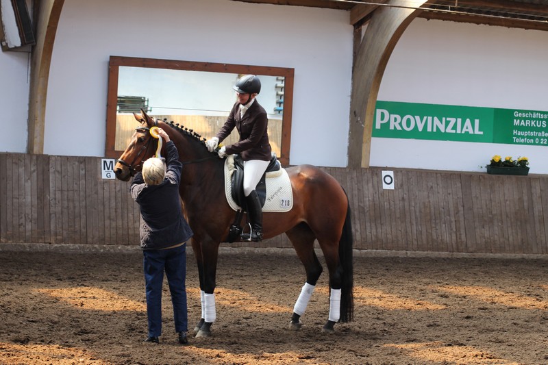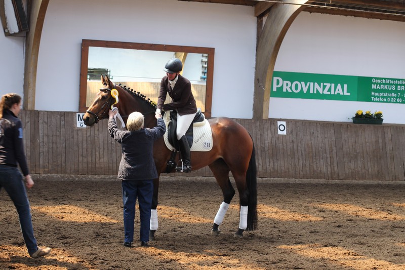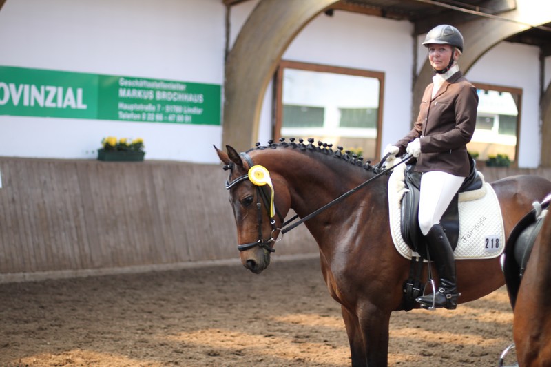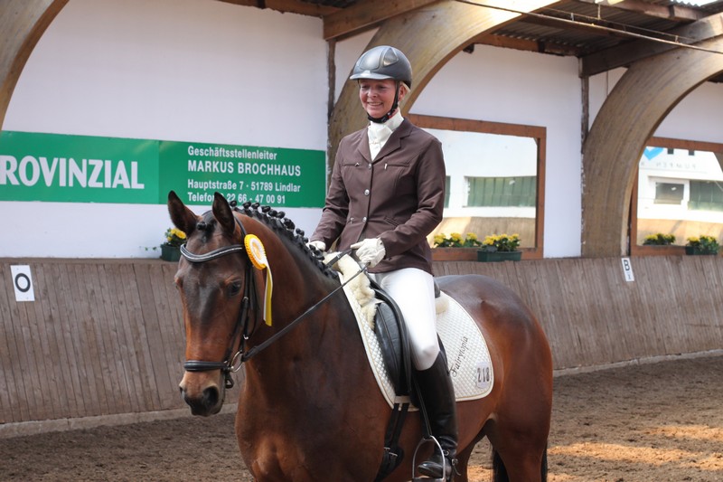 Ein weiteres, tolles Ergebnis erzielte Heike Mantel am 17.05.2012 bei der Dressurpferde-A in Lindlar. Der Wettergott hatte trotz wirklich übler Vorwarnungen ein Einsehen, dass Reitsport am Besten ganz ohne Regen stattfinden sollte. So konnte die Veranstaltung zwar kalt, aber trocken stattfinden. was in erster Linie den Springreitern zu Gute kam, die ihren Wettkampf auf dem Aussenplatz ausgetragen haben.